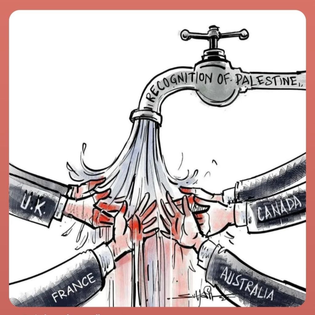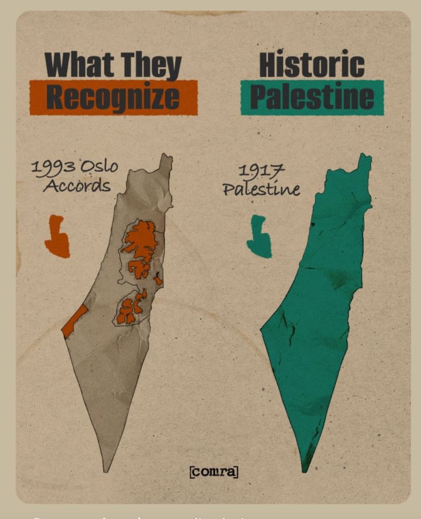 What does it actually mean for the UK to recognise Palestine? Surely the country that colonised Palestine in 1917 is aware of it’s existence. In that same year it issued the Balfour Declaration, supporting the establishment of a “national home for the Jewish people” on Palestinian land. Which border is it exactly recognising? 1916, 1946, 1947, 1967, 1993 or the 2012? As israel continues to annex the West Bank, turning it into what Gaza was before the current genocide, surrounded military and with settlers encroaching on the land, where exactly will this newly recognised state of Palestine exist? Gaza, has been demolished and Palestinians there are being ethnically cleansed. Occupied East Jerusalem, which was annexed by israel in 1980, is a part of the Palestinian territories according to international law, but under illegal occupation by israel. The King Hussain bridge, connecting the West Bank to Jordon, and the only entry and exit point from the West Bank, has been closed by israel as yet another method of collective punishment by israel. Rather than do anything practical to stop the genocide, the UK’s actions have resulted in its zionist ally tightening its grip around Palestinian necks.